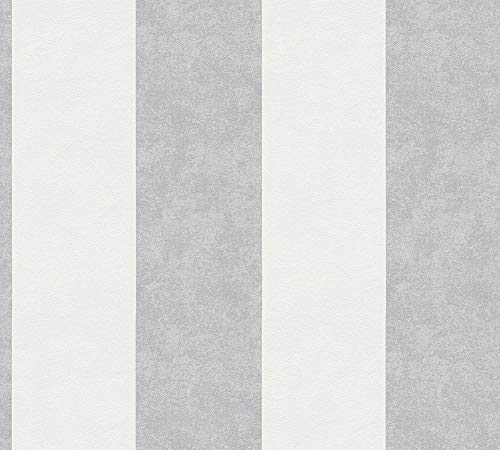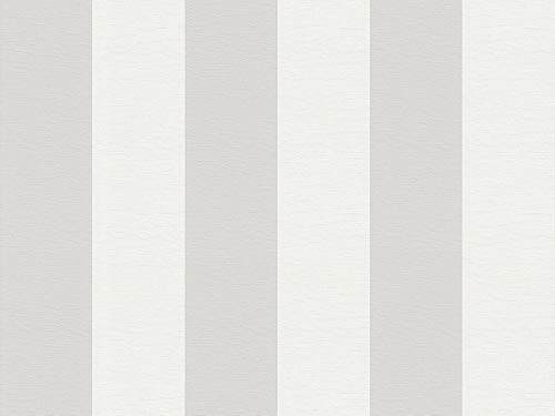 A.S. Création Papier peint intissé - Tapisserie papier peint à rayures en gris et blanc - Papier peint pour différentes pièces - Papier peint mural de 10,05 m x 0,53 m