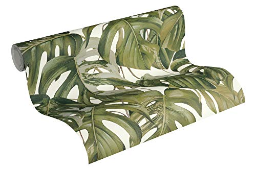 Livingwalls Travel Styles Papier peint non tissé Motif feuille de palmier Vert et beige Papier peint mural tropical pour différentes pièces 1,59 m x 2,80 m