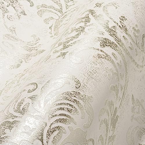 Livingwalls Travel Styles Papier peint intissé style baroque blanc et argenté - Papier peint mural classique pour différentes pièces - 10,05 m x 0,53 m