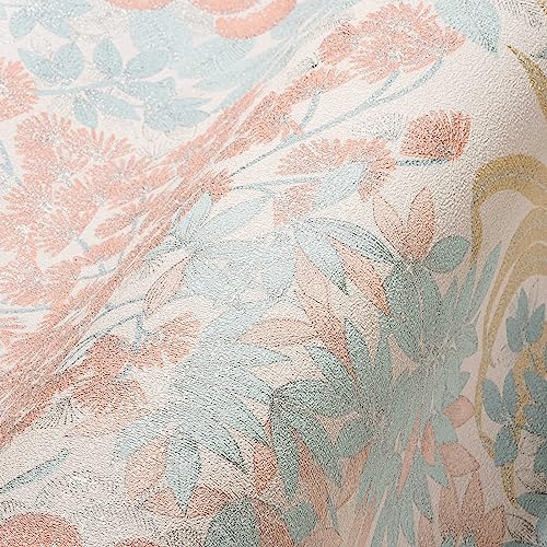 Livingwalls Papier peint intissé - floral en turquoise, rose et noir - pour diverses pièces - Papier peint mural de 10,05 m x 0,53 m