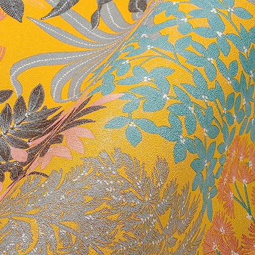 Livingwalls Travel Styles Papier peint intissé Motif fleurs sauvages Jaune et noir Papier peint mural élégant pour différentes pièces 10,05 x 0,53 m