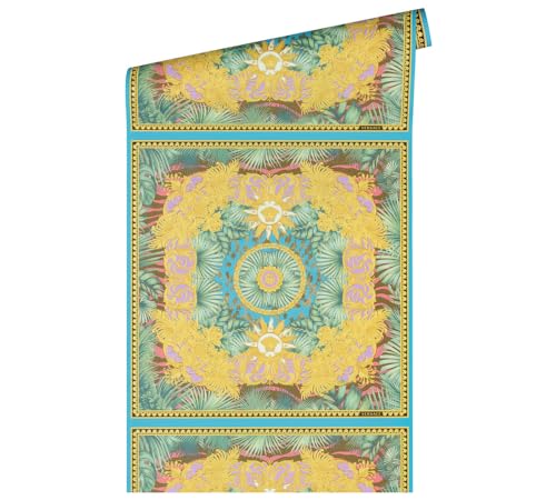 Versace 387031 Papier peint mural de luxe Motif jungle Multicolore Vert Palmiers Violet Or Bleu Logo Medusa 10,05 x 0,70 m Fabriqué en Allemagne