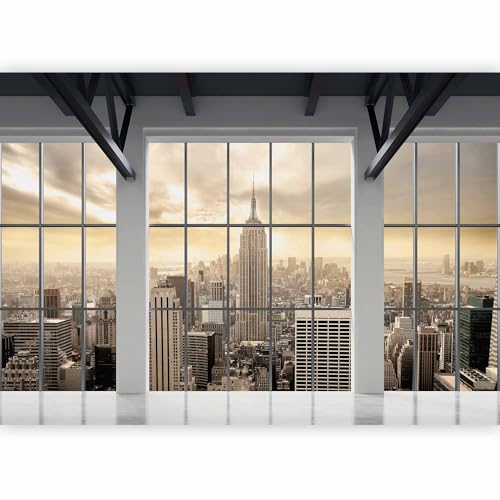 Papier peint murando panoramique ville 400x280 cm - Revêtement mural décoration pour chambre salon - Design moderne - Bleu beige vert - Ville l'architecture urbain pont new york d-A-0034-a-a