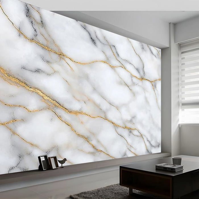 Papier Peint Intissé Abstrait Texture De Marbre Motif Papier Peint Panoramique pour Chambre Décoration 400 x 280 cm Gris Clair