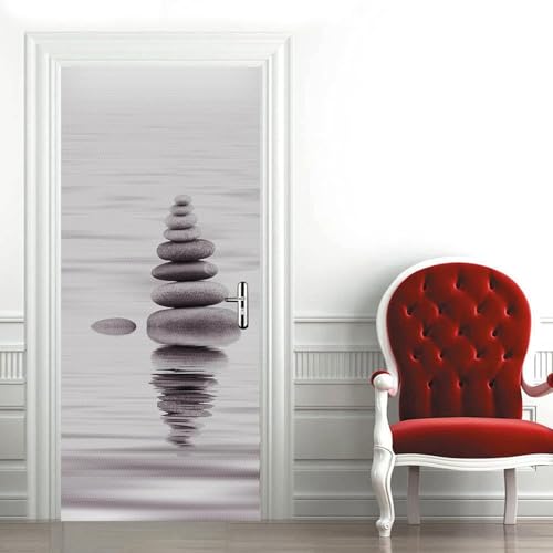 Sticker Porte 3D Pierre De Sable Zen Mer Autocollant Poster De Porte Auto-Adhésif Affiche De Porte Sticker Mural Chambre Salle De Bain Papier Peint Art Décor 90 X 200 Cm