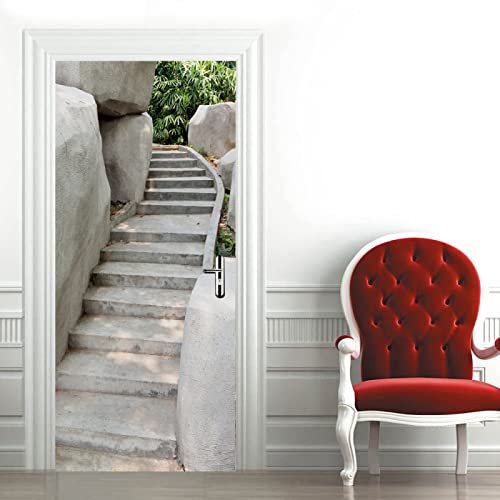 Papier Peint Porte Sticker Rue escaliers en pierre 3D Porte Autocollants Auto- Adhésif Amovibles pour Portes Intérieures Bureau À Domicile L77 x H200cm