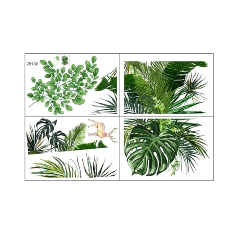 Zambuph 4 pièces feuilles vertes vinyle autocollant mural sans couture papier peint plantes auto-adhésif décalcomanie salon maison maternelle pépinière