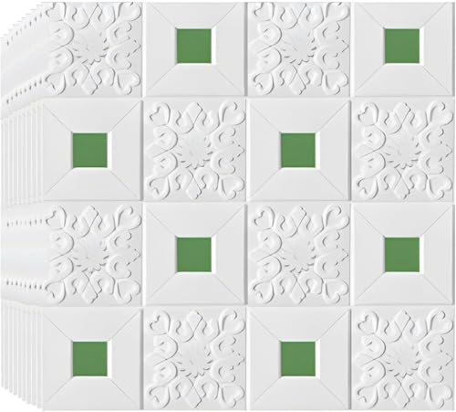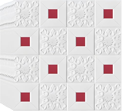 Stickers Carrelage PVC Épais, Papier Peint Adhésif Imperméable, Dalle PVC Murale Résistante à l’Huile, Panneau Décoratif Salle de Bain Chambre Salon(White-d,80 cm x 300 cm 4 Roll)