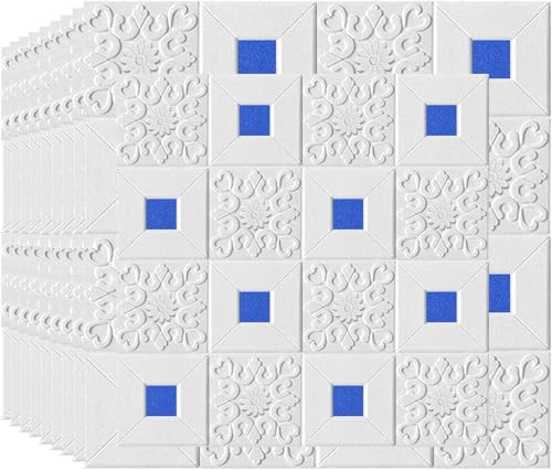 Stickers Carrelage PVC Épais, Papier Peint Adhésif Imperméable, Dalle PVC Murale Résistante à l’Huile, Panneau Décoratif Salle de Bain Chambre Salon(White-d,40 cm x 300 cm 4 Roll)