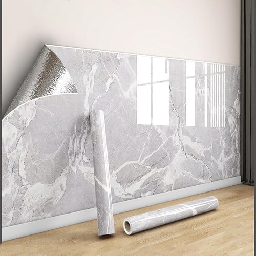 Stickers Carrelage PVC Épais, Papier Peint Adhésif Imperméable, Dalle PVC Murale Résistante à l’Huile, Panneau Décoratif Salle de Bain Chambre Salon(Gray-c,40 cm x 300 cm 4 Roll)