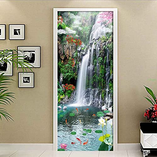 LuSeven autocollant porte Cascades lacs escaliers plantes 50x125cm(19.68 inches * 49.21 inches) Sticker De Porte Trompe l'oeil Effet 3D Intérieure Papier Peint Peintures Imperméable Amovible Autocolla