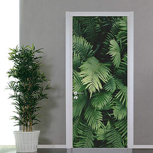 Stickers 3D Porte Poster Feuilles De Plantes Vertes Créatif Papier Peint Porte Trompe L'Oeil Pour Salon Chambre Décoration De La Maison Stickers Muraux Imperméable Stickers Amovibles 77X200Cm