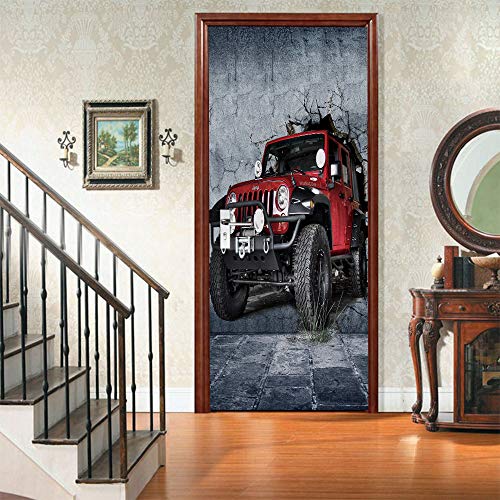 BOVZOX Sticker Porte Effet 3D Vintage & Car Autocollant Porte Trompe l'œil - Poster de Porte - Stickers muraux Salon Porte, Cuisine, Chambre, Salle de Bain - Sticker Mural Papier Peint L77 x H200cm