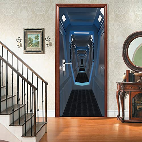 Stickers 3D Porte Poster Escaliers D'Angle Mode Créatif Papier Peint Porte Trompe L'Oeil Pour Salon Chambre Décoration De La Maison Stickers Muraux 77X200Cm Imperméable Stickers Amovibles