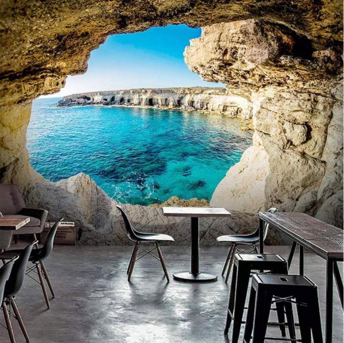 Papier Peint Grotte mer 3D Soie Décoration Murale XXL Poster Trompe l oeil Tableaux Muraux pour Salon Chambre Toile 400x280cm
