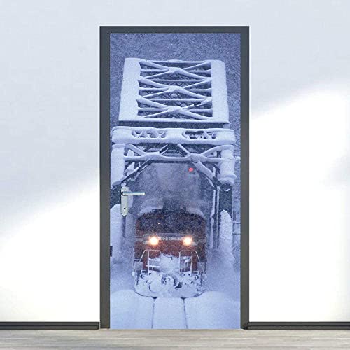 Sticker Porte Effet 3D - Autocollant Trompe L'Œil Pour Porte - Décoration Pour Porte Cuisine, Salon, Chambre, Salle De Bain - Style Papier Peint Pour Les Murs - Voie Ferrée Chemin De Fer D'Hiver 77 X
