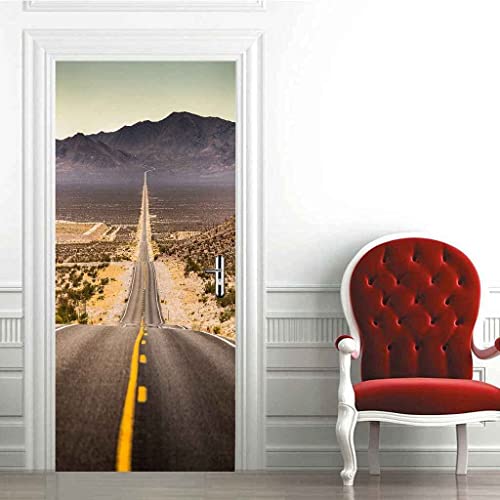 Sticker De Porte 3D Paysage De Route Du Désert 77 X 200 Cm Autocollant Porte Pvc Trompe L'Oeil Papier Peint Mural Imperméable Art Decal Amovible Pour Salon Cuisine Chambre Salle De Bain Décoration