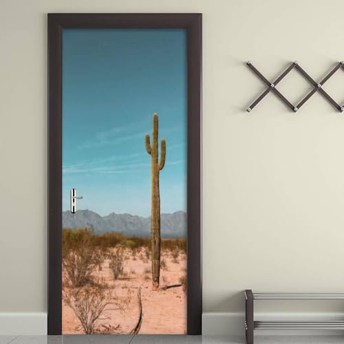 Sticker Porte Cactus Papier Peint Porte Paysage Désertique 3D Stickers de Porte Trompe l'Oeil Autocollant de Décoration pour Porte Mural Salon Chambre Poster Porte 85x200 cm a.3271