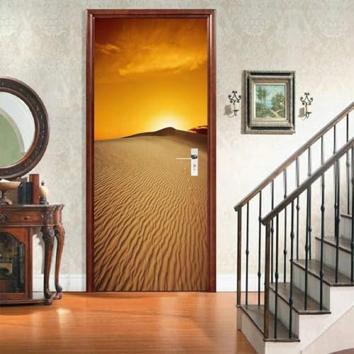 Stickers Porte Désert Poster Porte Trompe L'oeil, Effect 3D Paysage Désertique Autocollant, Auto-Adhésif Papier Peint Mural Chambre Salon Mur Décoration Art Sticker Muraux 90x210 cm m9977