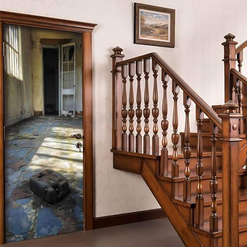 Sticker Porte Usine Délabrée Autocollant de Porte 3D Paysage Papier Peint Trompe l'Oeil Stickers Poster Muraux de Décoration pour Mural Salon Chambre 77x200 cm a.6476