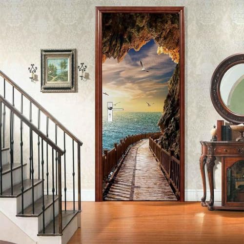 Papier Peint Porte 90x200 cm Paysage de bord de mer Trompe l'oeil Sticker Poster Porte Trompe l'oeil Intérieure Muraux PVC pour Décoration Mur Salon Cuisine Chambre Salle de Bain
