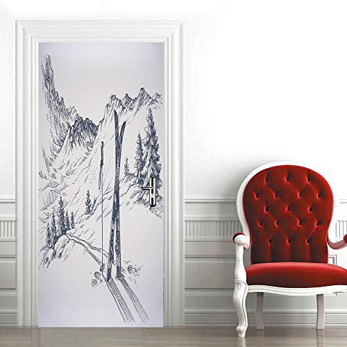 Stickers Mural Porte 3D Poster Autocollant Porte Trompe l'oeil Auto-adhésif Vinyle Affiche De Porte Stickers Photo Chambre Salle De Bain Papier Peint Art Décor 93x205 cm Paysage De Montagne Enneigé