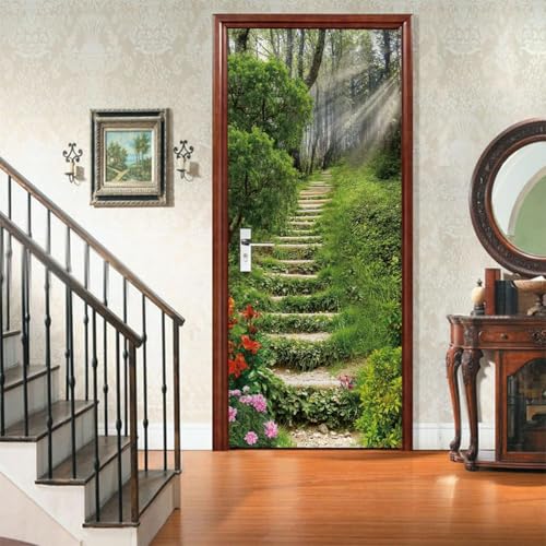Stickers Porte Escaliers Poster Porte Trompe L'oeil, Effect 3D Paysage Naturel Autocollant, Auto-Adhésif Papier Peint Mural Chambre Salon Mur Décoration Art Sticker Muraux 77x200 cm m9861