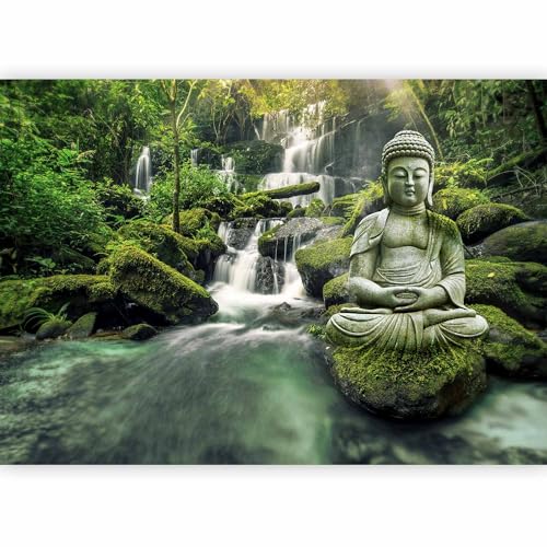 Papier peint murando intissé 250x175 cm Décoration Murale XXL Poster Tableaux Muraux Tapisserie Photo Trompe l'oeil Bouddha nature paysage chute d''eau c-C-0019-a-b