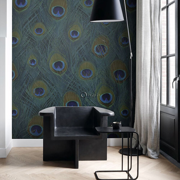 Origin Fototapet Påfågelfjädrar Havsgrön fototapet påfågelfjädrar havsgrönt EW357245