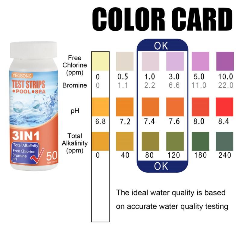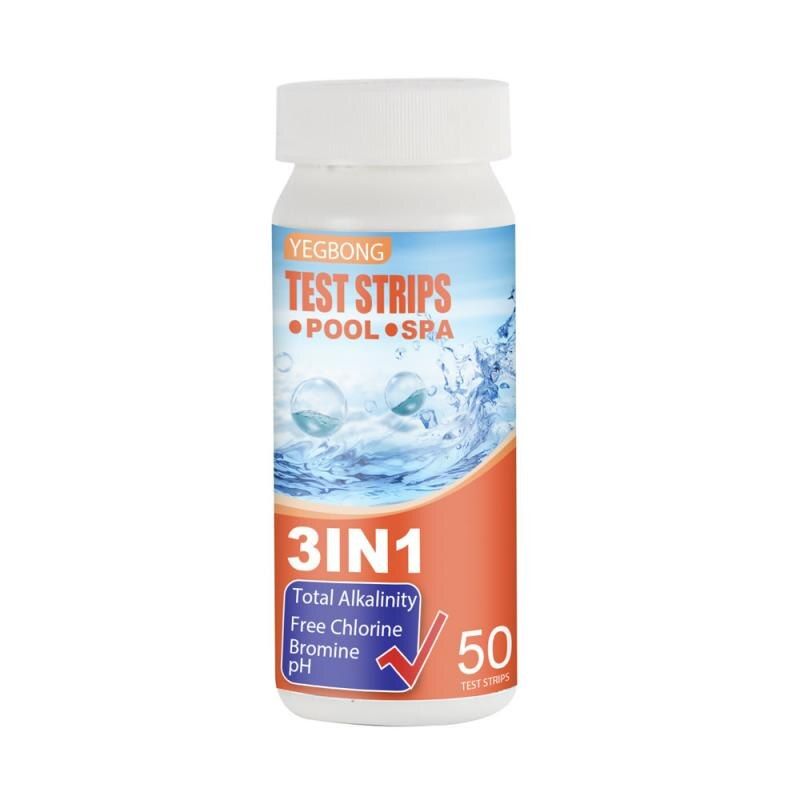 Testeur de qualité de l'eau de piscine 3 en 1, 50 pièces, papier Test de PH de chlore résiduel, bande de Test de dureté d'alcalinité, une bouteille