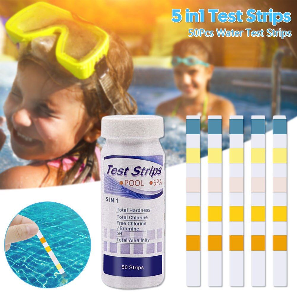 Testeur de qualité de l'eau 5 en 1, piscine Spa, bandes de papier, chlore brome PH valeur, Kit de dureté d'alcalinité, 50 bandes