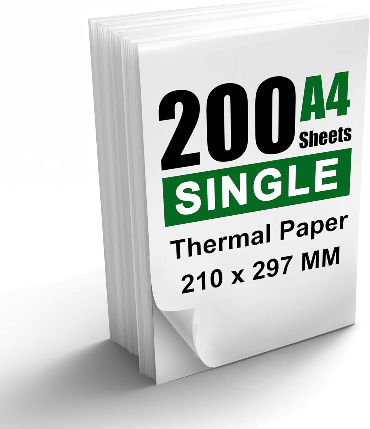 JEXNOVASHOP-200 Feuilles de Papier Thermique A4, 210 x 297 mm pour Imprimante Thermique Portable, Compatible avec MT800/MT800Q/M08F/PJ762/PJ763MFi, Idéal pour École ou Bureau, Impression de Fichiers,