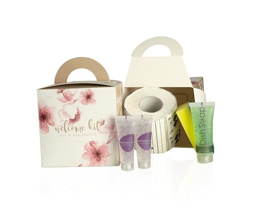 PRESENT-MORE - Accessoires camping 12 pièces - Kit camping cuisine et salle de bain en boîte - Contenu : couplé, détergent, sac, 2 en 1 et papier toilette - Fabriqué en Italie - Idéal pour le camping