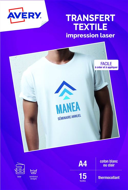Avery Transfert Textile - Blanc - A4 (210 x 297 mm) 15 feuille(s) papier de transfert