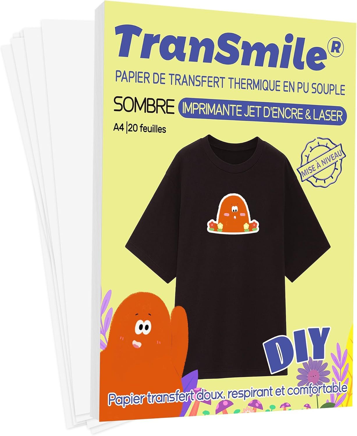 Papier Transfert - TransOurDream - 3.0 - 20 feuilles A4 - Noir pour Textile - Impression Laser & Jet dEncre