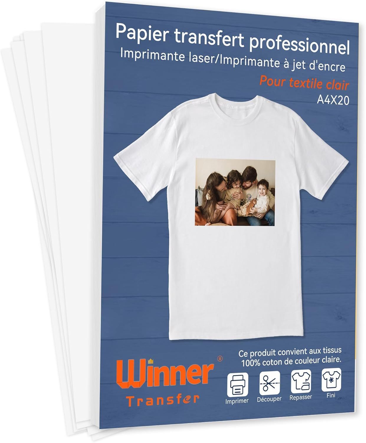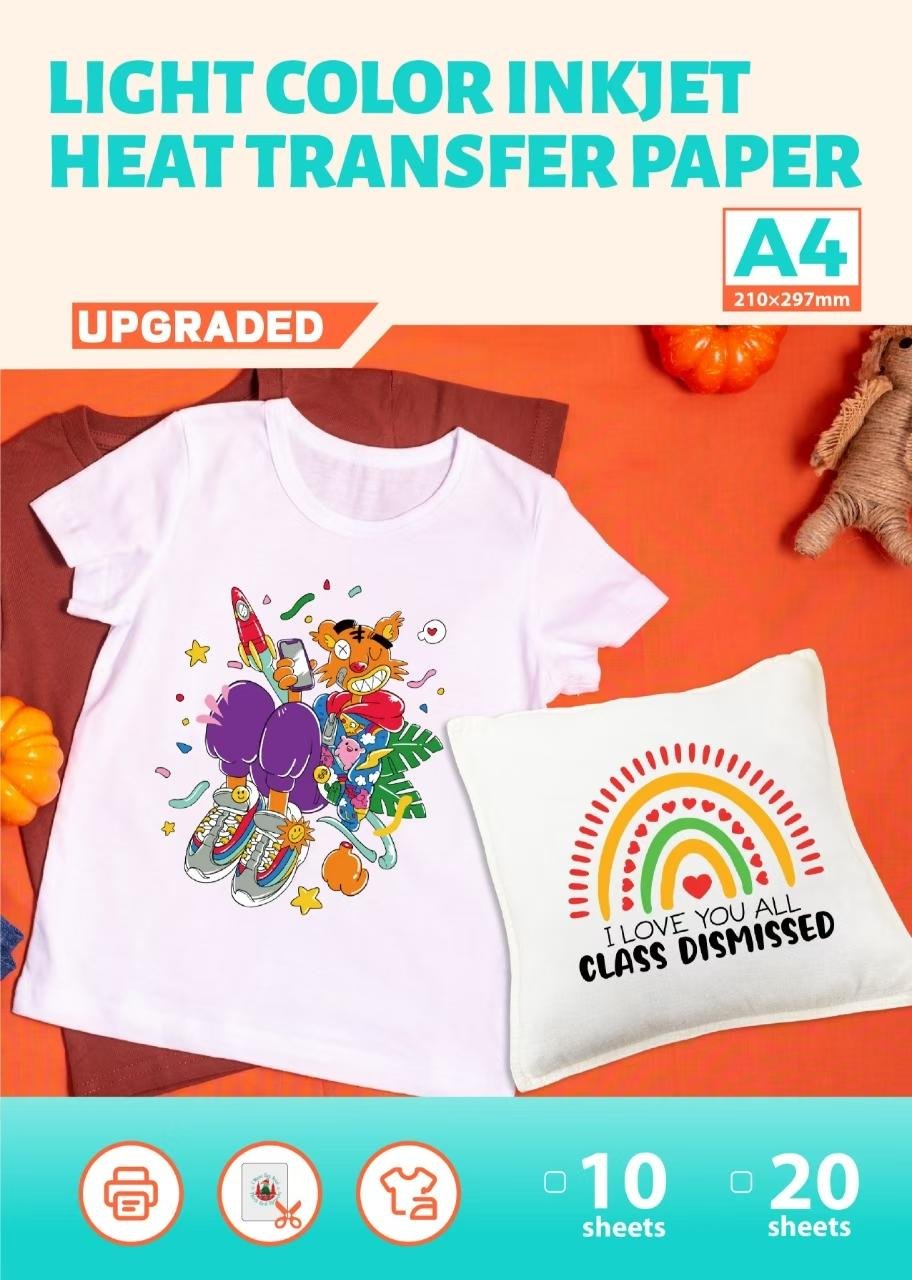 LETNERNY-A4 X 20 Feuilles Papier Transfert Professionnelle Pour Textile Blanc Et Clair, Compatible Imprimante Jet D'Encre Et Laser, Impression Non Miroir (Fr-Wt-2-6.0-20)