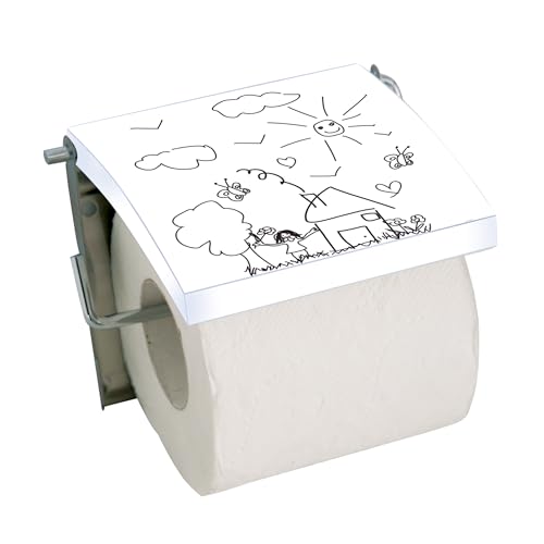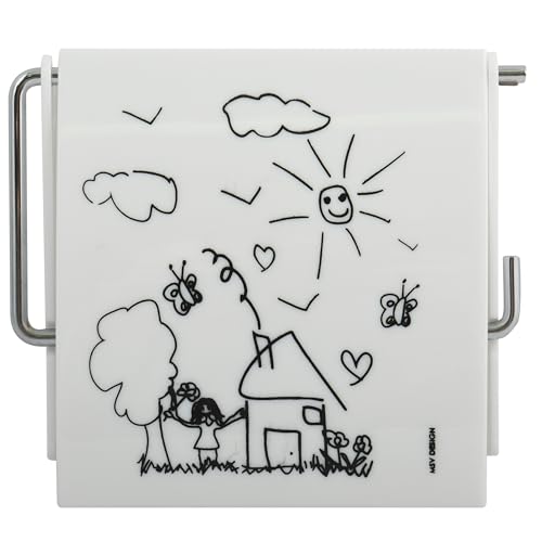 MSV - Porte Rouleau Papier WC Mural - PS & Acier Chromé - Modèle Jardin d'enfants - Dimensions 13 x 15 x 11,5 cm - Couleur Noir & Blanc - Idéal pour Stockage Douche et Accessoires de Bain