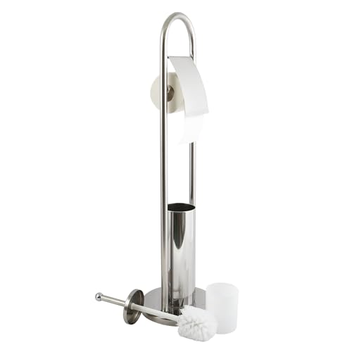 MSV, Combiné pour WC 2 en 1 avec Support WC avec récipient intérieur Amovible pour Brosse WC, en INOX, Brosse WC et Dérouleur Papier Toilette, Serviteur WC Non Fixe, INOX