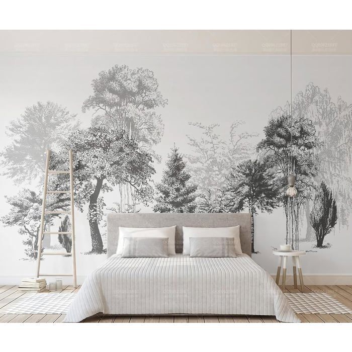 Papier Peint Panoramique 3D Forêt Rétro Grand Arbre Paysage De Style Croquis Noir Et Blanc 300x210cm Papiers Peints Intissé
