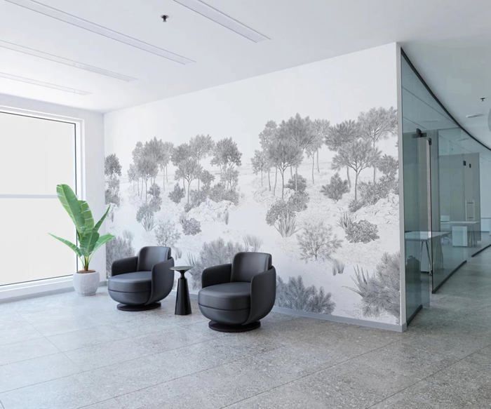 Papier Peint Panoramique noir et blanc paysage de dunes pins buissons papiers peints Soie 3D Decoration Murale 350x250cm