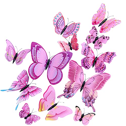 24 Pièces 3D Papillon Stickers Muraux Décoration Papillon pour Fête, Chambre, la Décoration de Gâteau, pour Filles et Garçons (Rose)