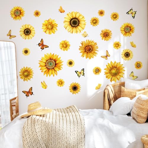 fufuquare Autocollants Muraux Papillon Tournesol éclatants, Stickers Muraux vintage floraux amovibles à décoller et coller, Papier peint Mural pour Chambre à coucher, Salon, Cuisine