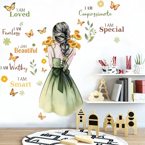 Trlyane Stickers Muraux Fille Stickers Chambre La Princesse Papillon Stickers Muraux Fille Citations Inspirantes pour Chambre de Bébé Pépinière D'enfant Décoration Murale De La Maison