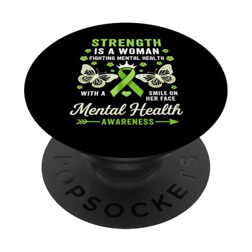 Sensibilisation à la santé mentale Femmes Papillon Vert Santé mentale PopSockets PopGrip Adhésif