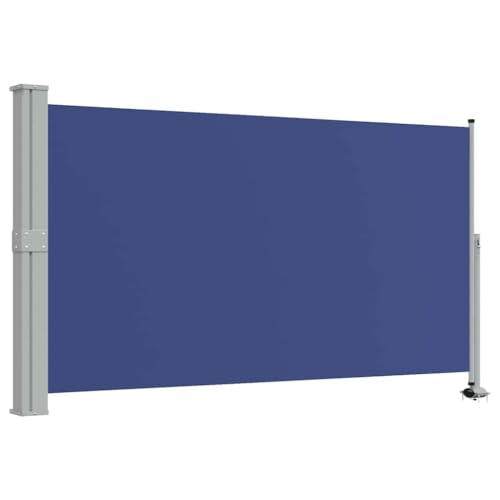 Store latéral extensible bleu 160 x 300 cm, pour terrasse, balcon, jardin, brise-vue, protection solaire, coupe-vent, fer revêtu par pulvérisation, pour extérieur