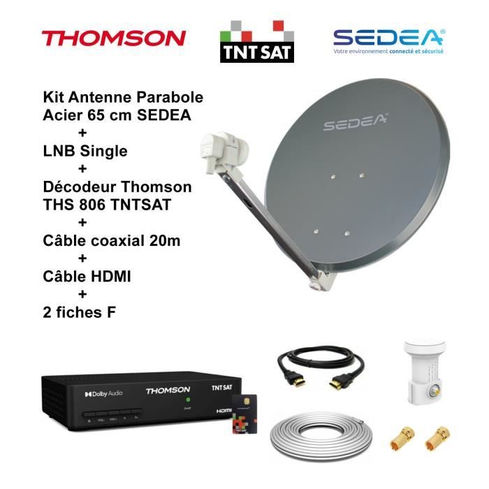 Pack HDSAT Parabole satellite acier 80cm avec Support LNB + LNB Single + Décodeur Satellite ASTRA HD