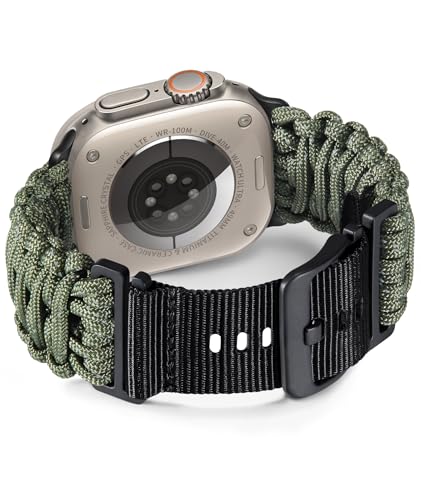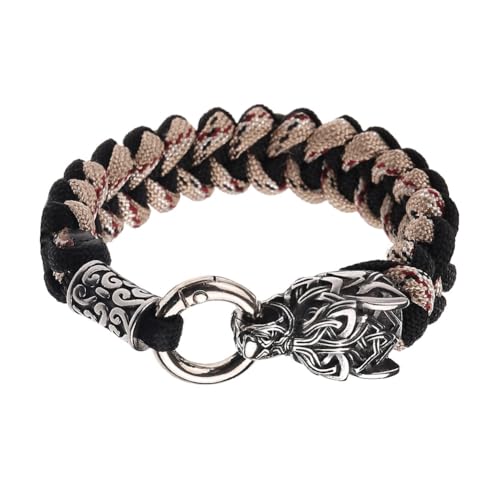 DonDon Paracord Bracelet de Survie Hommes Acier Inoxydable Bracelet Outdoor Tressé Olive-Gris-Marron
