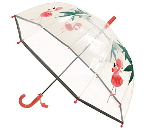 SMARTBULLE Parapluie Enfant Transparent Cloche - Bordure fluorescente : Résistant au vent ; Diamètre=71cm ; ouverture manuel ; Parapluie Fille ; Motif : FLAMANT ROSE