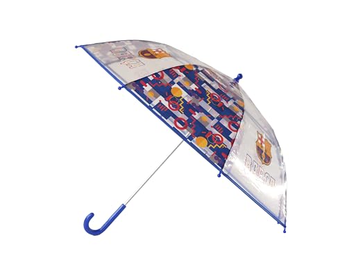 CYPBRANDS CyP Brands-FCBarcelona Parapluie pour enfant, diamètre 48 cm, manuel, transparent, produit officiel, multicolore, única, Parapluie manuel transparent