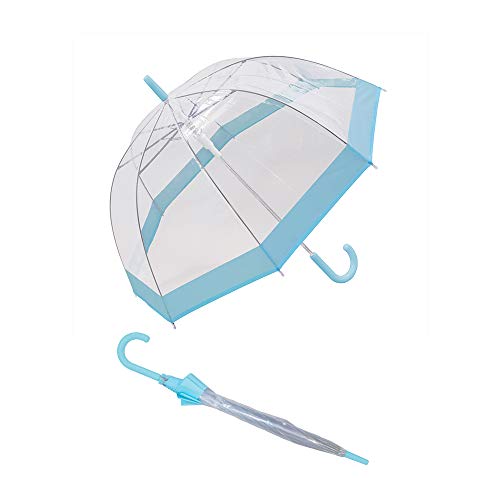 Susino Parapluie Cloche Transparent, Parapluie Transparent avec Bordure Bleue Pastel, Parapluie Dome, Large Protection avec Un Diamètre de 90 cm, Transparent et Bleu Paste
